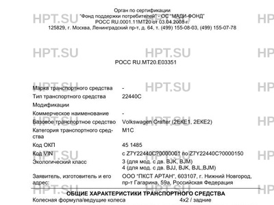 | Код VIN | с Z7Y22440С?0000001 по Z7Y22440С?0000150 |