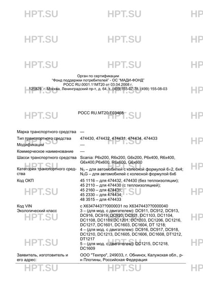 | Тип ТС | 474430, 474432, 474431, 474434, 474433 |