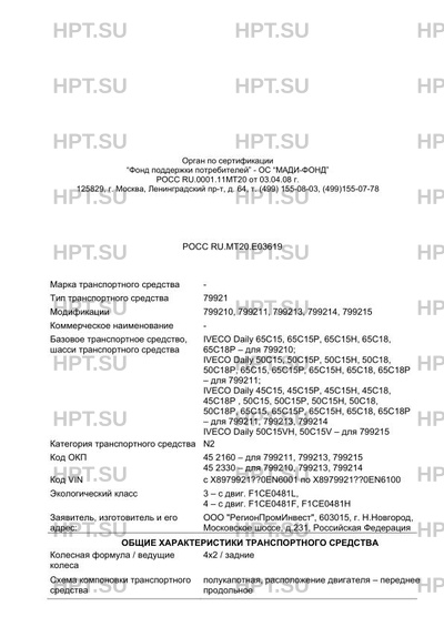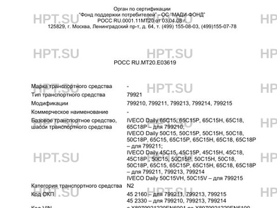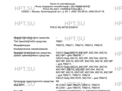 | Базовое ТС / Шасси | IVECO Daily 65C15, 65C15Р, 65C15Н, 65C18, 65C18Р - для 799210; IVECO Daily 50C1… |