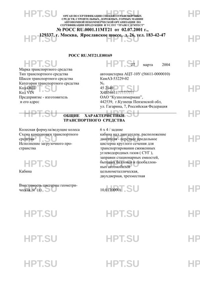 | Тип ТС | автоцистерна АТЦ-10У (56611-0000010) |