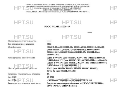 | Тип ТС | 88660D (8866-00000010-01), 88660A (8866-00000010), 88660B (8866-00000011), 88660C (8866-00000012), 88660E (8866-00000010-02), 88660F (8866-00000010-03), 88660H (8866-00000011-03) |