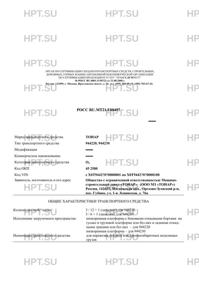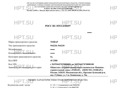| Код VIN | с Х0Т9442?0?0000001 по Х0Т9442?0?0000100 |