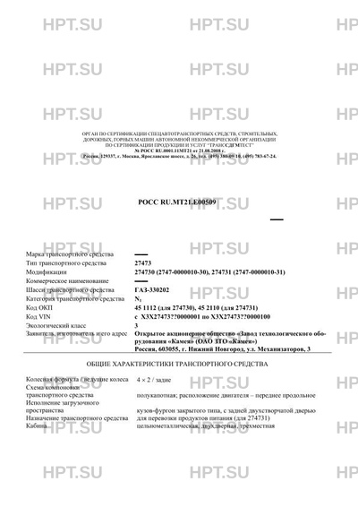 | Код VIN | с X3X27473??0000001 по X3X27473??0000100 |