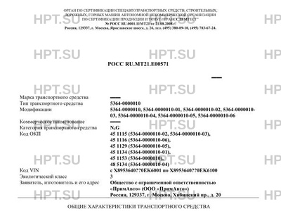 | Предприятие-изготовитель | Общество с ограниченной ответственностью "ПримАвто" (ООО "ПримАвто") Россия, 129337, г. Москва, Хибинский пр., д. 20 |