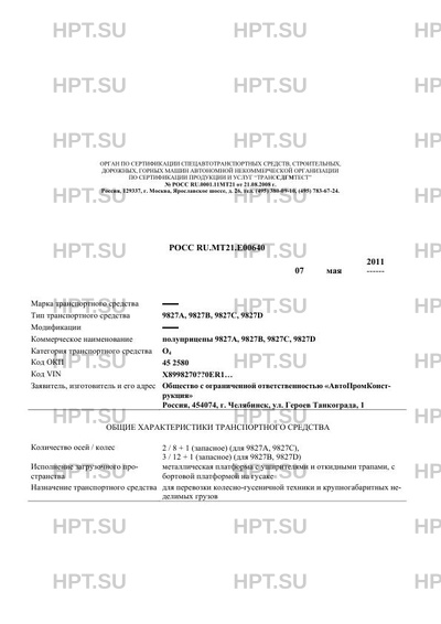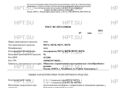 | Коммерческое наименование | полуприцепы 9827A, 9827B, 9827C, 9827D |