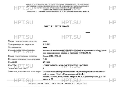 | Коммерческое наименование | наземный мобильный комплекс специализированного оборудования авиационного поиск… |