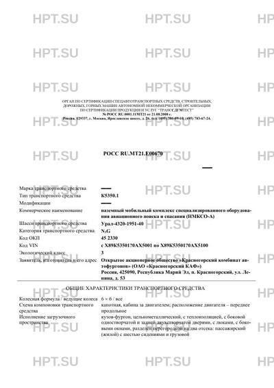 | Оборудование ТС | оборудование КВ-радиосвязи с АФУ (далее антенно-фидерным устройством), УКВ-радиосвязи с АФУ, спутниковой связи с АФУ, проводной связи, радиорелейной связи с АФУ, широкополосного беспроводного доступа с АФУ, оконечное телекоммуникационное оборудование, кабели связи или без перечисленного оборудования; электроагрегат дизельный, лебедка электрическая DV15000, предпусковой подогреватель двигателя, компрессор 5H15, кондиционер кабины Webasto CC5, кондиционер кузова Webasto CC4E, дозиметр гамма-излучения ДКГ-03Д "Грач", аппараты дыхательные и искусственной вентиляции легких |