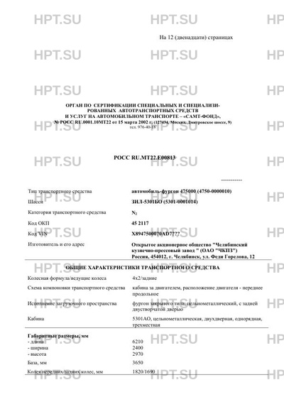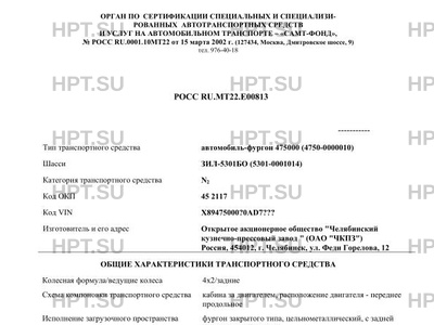 | Тип ТС | автомобиль-фургон 475000 (4750-0000010) |