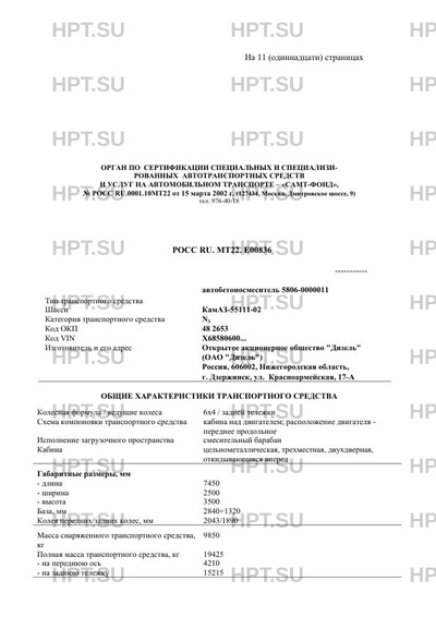 | Коммерческое наименование | Автобетоносмеситель 5806-0000011 на шасси КАМАЗ-55111-02 |