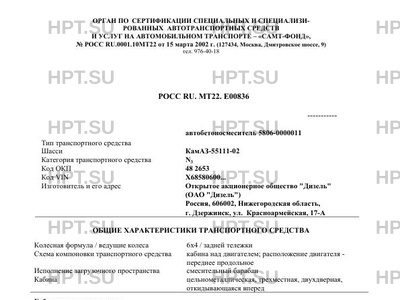 | Базовое ТС / Шасси | КамАЗ-55111-02 |