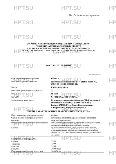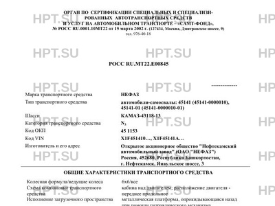 | Тип ТС | Автомобили-самосвалы: 45141 (45141-0000010), 45141-01 (45141-0000010-01) на шасси КАМАЗ-43118-13 |