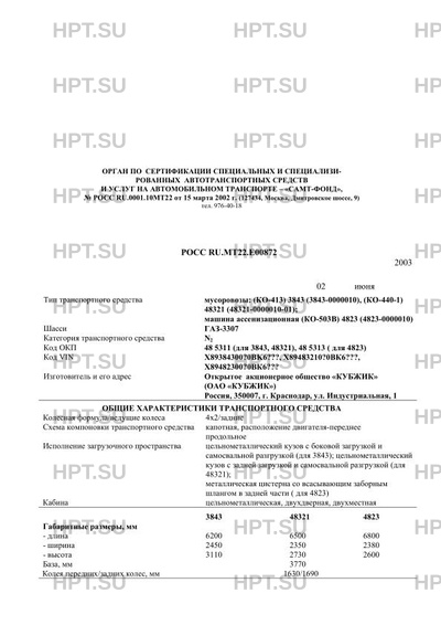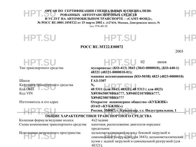| Тип ТС | мусоровозы: (КО-413) 3843 (3843-0000010), (КО-440-1) 48321 (48321-0000010-01); … |