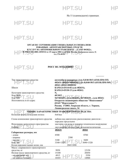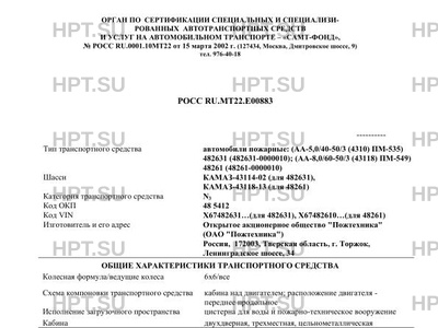 | Коммерческое наименование | Автомобили пожарные: (АА-5/40-50/3(4310)ПМ-535) 482631 (482631-0000010), (АА-8/… |