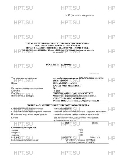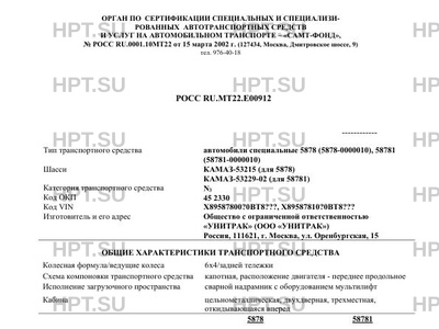 | Тип ТС | Автомобили специальные 5878 (5878-0000010), 58781 (58781-0000010) на шасси КАМАЗ-53215 (для 5878), КАМАЗ-53229-02 (для 58781) |