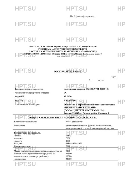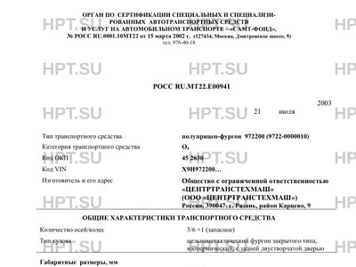 Тип ТС полуприцеп-фургон 972200 (9722-0000010)