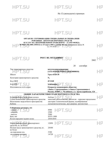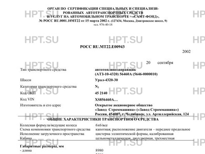 | Тип ТС | автотопливозаправщик (АТЗ-10-4320) 56460А (5646-0000010) счетчика жидкости ППО … |
