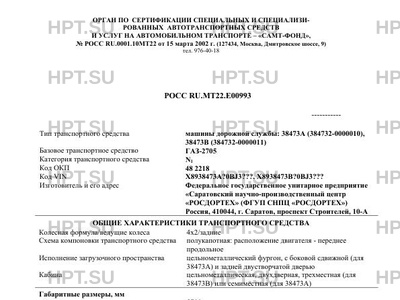 | Тип ТС | машины дорожной службы: 38473А (384732-0000010), 38473В (384732-0000011) |