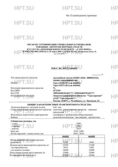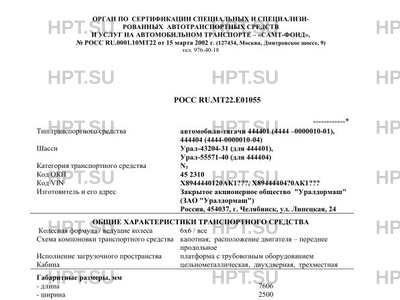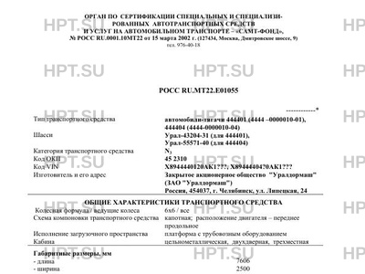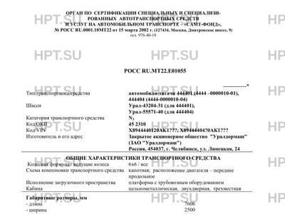 Тип ТС автомобили-тягачи 444401 (4444 -0000010-01), 444404 (4444-0000010-04)