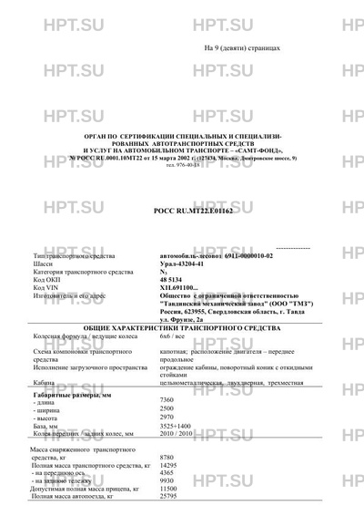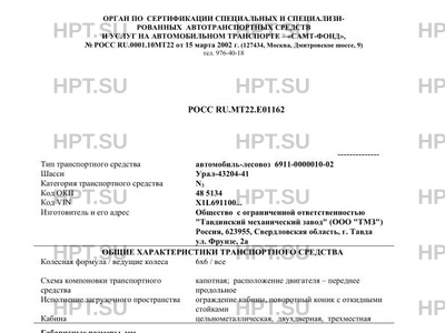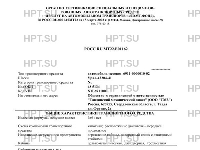 | Коммерческое наименование | автомобиль-лесовоз 6911-0000010-02 на шасси Урал-43204-41 |