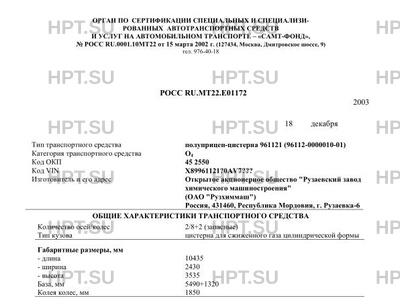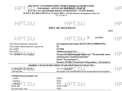 | Тип ТС | полуприцеп-цистерна 961121 (96112-0000010-01) |