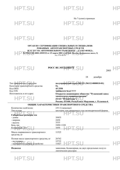 | Коммерческое наименование | полуприцеп-цистерна 961121 (96112-0000010-01) |