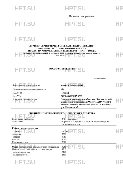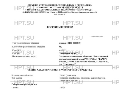 | Предприятие-изготовитель | Закрытое акционерное общество "Рославльский автомеханический завод РАМЗ" (ЗАО "РАМЗ") Россия, 216500, Смоленская область, г. Рославль, ул. Пушкина, 47 |