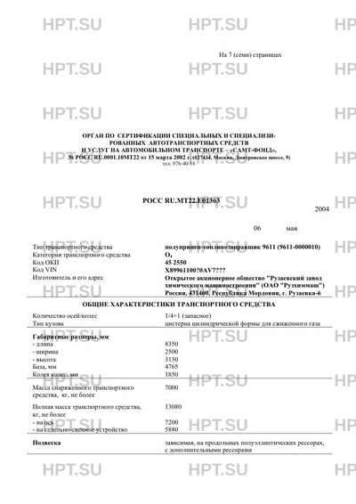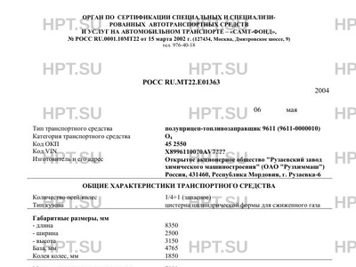| Тип ТС | Полуприцеп-топливозаправщик 9611-0000010 |