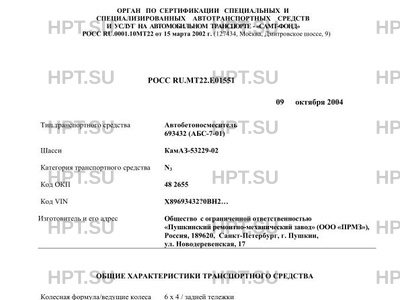 | Коммерческое наименование | Автобетоносмеситель (АБС-7-01) 693432 на шасси КАМАЗ-53229-02 |