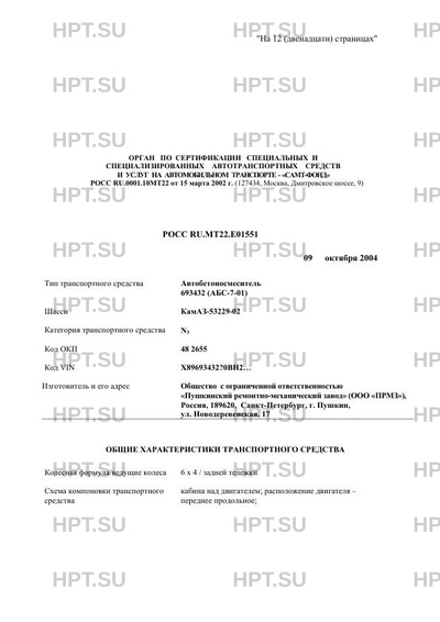 | Базовое ТС / Шасси | КамАЗ-53229-02 |