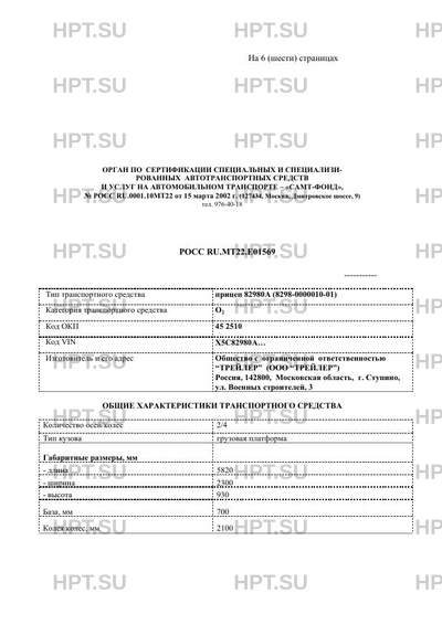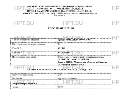 | Коммерческое наименование | Прицеп 82980А (8298-0000010-01) |