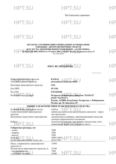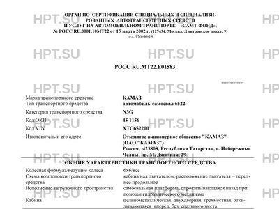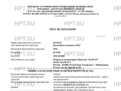 | Коммерческое наименование | Автомобиль-самосвал КАМАЗ-6522 |