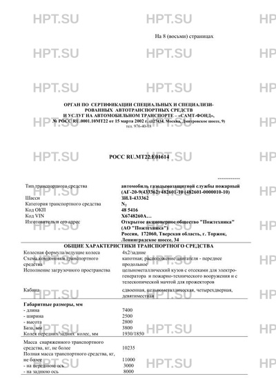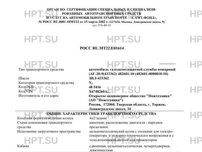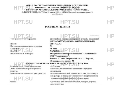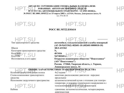 | Коммерческое наименование | Автомобиль газодымозащитной службы пожарный (АГ-20-9(433362) 48260А на шасси ЗИ… |