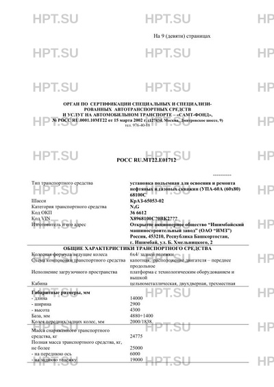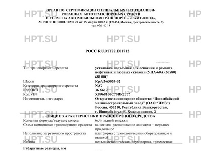 | Тип ТС | Установка подъемная для освоения и ремонта нефтяных и газовых скважин (УПА-60А (60х80) 68100С на шасси КрАЗ-65053-02 |