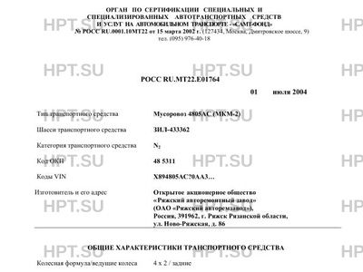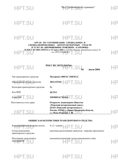 | Коммерческое наименование | Мусоровоз 4805АС (МКМ-2) на шасси ЗИЛ-433362 |