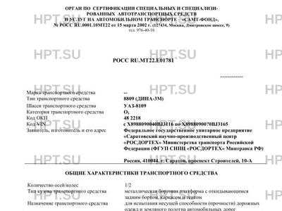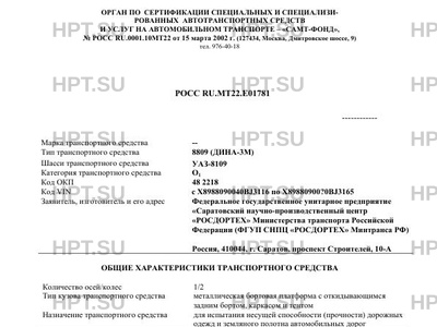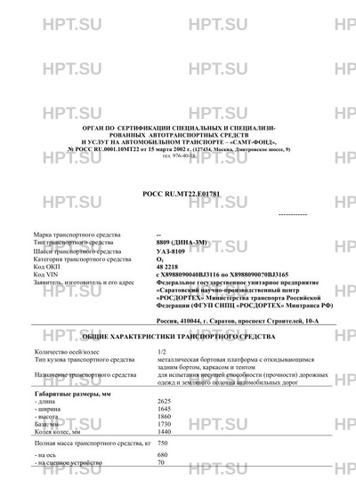 | Коммерческое наименование | 8809 ("ДИНА-3М") на шасси УАЗ-8109 |