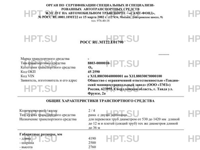 | Тип ТС | 8803-0000010 |