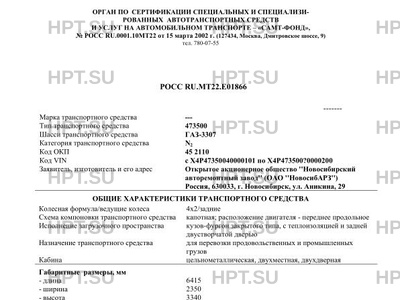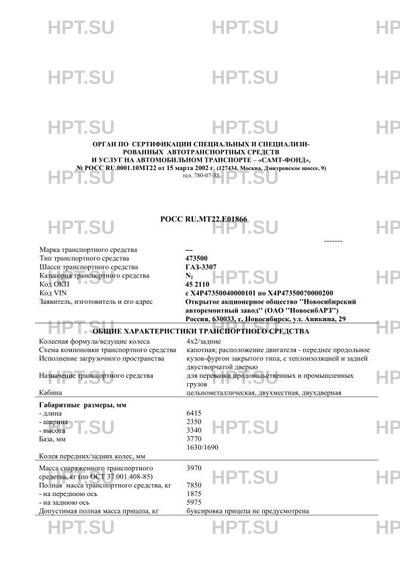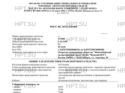 | Тип ТС | 473500 на шасси ГАЗ-3307 |