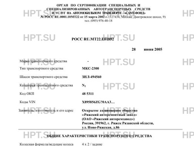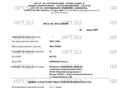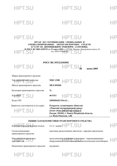 | Тип ТС | Мусоровоз МКС-2300 на шасси ЗИЛ-494560 |