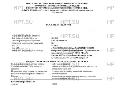 | Коммерческое наименование | 58150В на шасси КамАЗ-53215-15 |