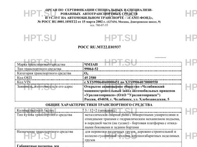 | Коммерческое наименование | ЧМЗАП-99064-52 |