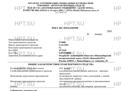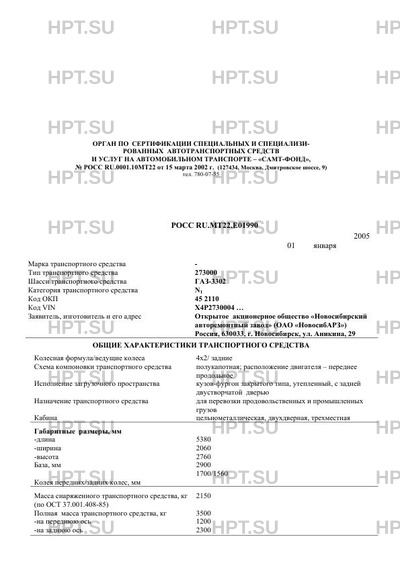 | Коммерческое наименование | Автомобиль-фургон 273000 на шасси ГАЗ-3302 |