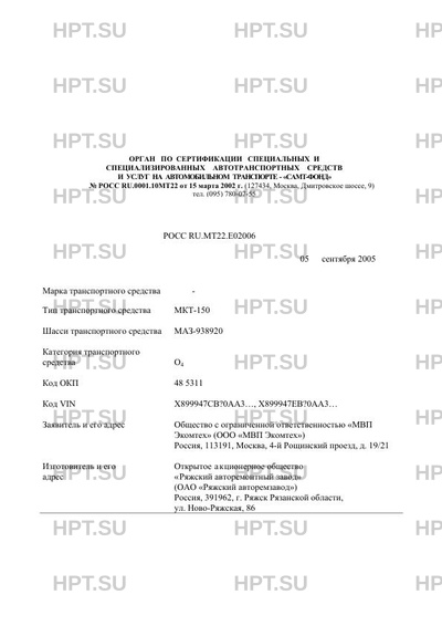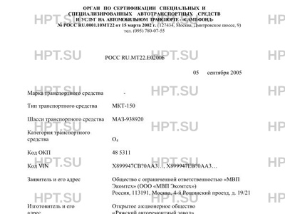 | Коммерческое наименование | Полуприцеп-мусоровоз МКТ-150 на шасси МАЗ-938920 |