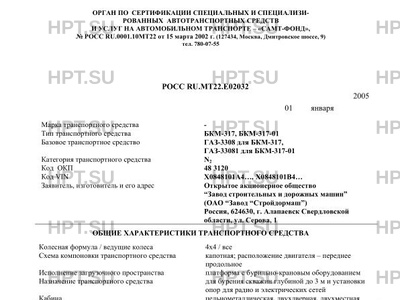 | Коммерческое наименование | БКМ-317, БКМ-317-01 на шасси ГАЗ-3308, ГАЗ-33081 |