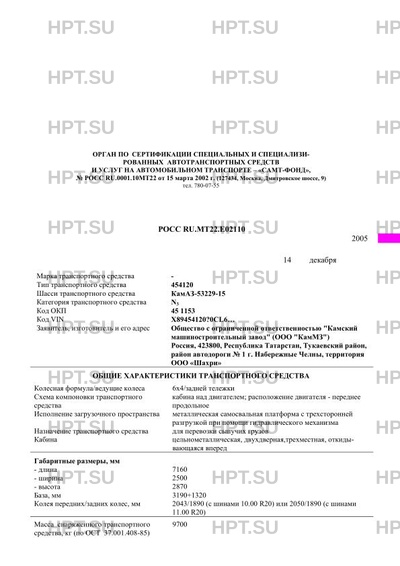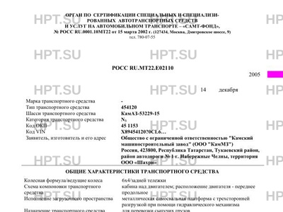 | Тип ТС | Автомобиль-самосвал 454120 на шасси КамАЗ-53229-15 |