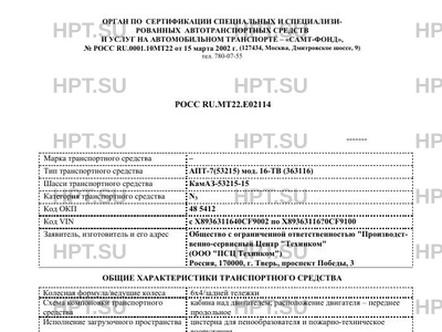| Тип ТС | АПТ-7(53215) мод. 16-ТВ (363116) |