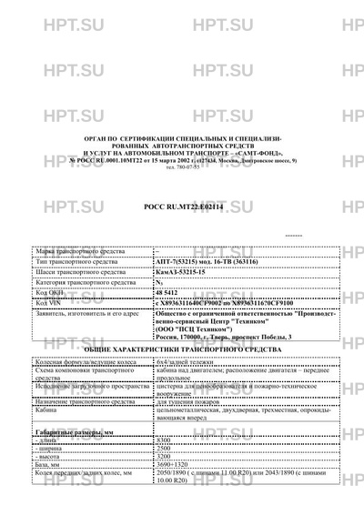 | Коммерческое наименование | Автомобиль пенного тушения пожарный АПТ-7(53215) мод. 16-ТВ (363116) на шасси К… |