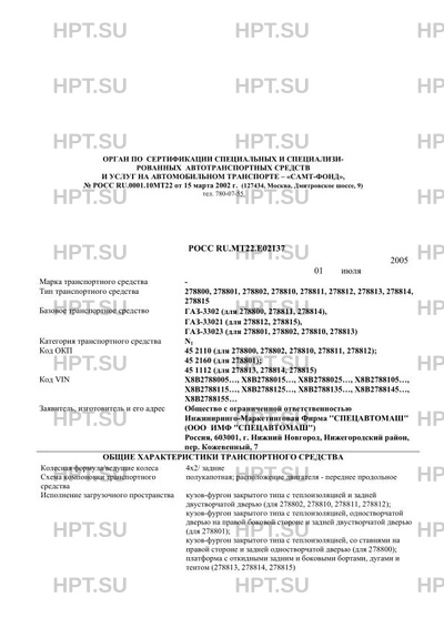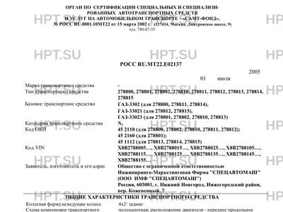 | Тип ТС | Автомобили-фургоны: 278800, 278802, 278810, 278811, 278812, автомобиль-мастерская 278801; автомобили грузовые 278813, 278814, 278815 на шасси ГАЗ-3302 (для 278800, 278811, 278814), ГАЗ-33021 (для 278812, 278815), ГАЗ-33023 (для 278802, 278801, 278810, 278813) |