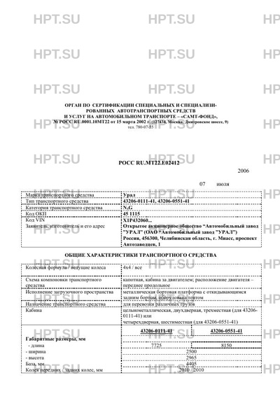 | Коммерческое наименование | Автомобили Урал-43206-0111-41, Урал-43206-0552-42 |