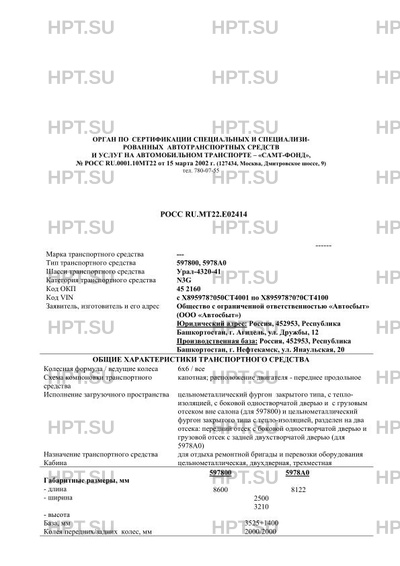 Коммерческое наименование Автомобили мастерские: 597800, 5978А0 на шасси Урал-4320-41