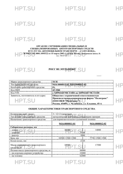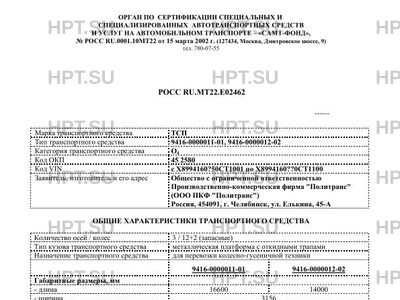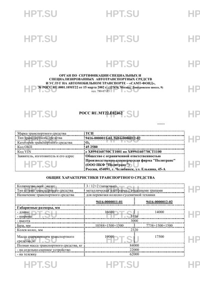 | Тип ТС | Полуприцепы-тяжеловозы: ТСП 9416-0000011-01, ТСП 9416-0000012-02 |